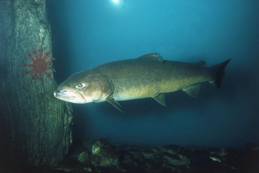 Il salmone è presente nell’Oceano Atlantico settentrionale, sia nell’area europea sia in quella americana, ma al momento della riproduzione risale i fiumi che vi sfociano e depone le uova nei corsi d’acqua montani: ogni individuo ritorna al fi ume che l’ha visto nascere, un fenomeno noto come homing (dall’inglese home, casa). È un pesce di dimensioni ragguardevoli, che può raggiungere un peso di 20 chilogrammi; il corpo è robusto e affusolato e la testa è piuttosto piccola, mentre la bocca è grande e dotata di denti conici e aguzzi. Presenta una colorazione argentea, con il dorso grigio-blu, il ventre bianco e diverse macchie nere sul capo e sugli opercoli; nel periodo della riproduzione, tuttavia, assume tonalità rosse e verdi sui fianchi, rosa sul ventre e ramate sugli opercoli. Una specie simile al salmone è la trota iridea (Oncorhynchus mykiss), che in natura vive lungo le coste dell’America Settentrionale affacciate sull’Oceano Pacifico e si riproduce nei fiumi che vi sfociano. A differenza del salmone, che può riprodursi più volte nel corso della vita, la trota iridea depone e feconda le uova una sola volta e poi muore. È comunemente utilizzata in acquacoltura, poiché si adatta molto bene all’allevamento.