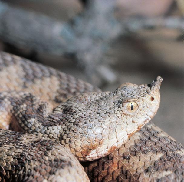La vipera dal corno vive nelle regioni dell’Europa sudorientale e dell’Asia occidentale, e frequenta ambienti sassosi e cespugliosi asciutti. In Italia si rinviene solo in Friuli-Venezia Giulia e in Trentino-Alto Adige. Il suo aspetto è reso inconfondibile dalla presenza di un piccolo corno all’estremità del muso (a cui deve il nome), la cui funzione è sconosciuta. Il corpo ha colorazione assai variabile, e i sessi hanno aspetto diverso: i maschi sono ornamentati in modo più vivace, con colore di fondo grigio chiaro, rosato o giallastro e disegni neri a zigzag, mentre le femmine hanno colore e ornamentazione meno evidenti. La vipera dal corno si ciba di piccoli roditori, lucertole e uccelli, che spesso caccia arrampicandosi sugli arbusti. Ovovivipara, dà alla luce 5-15 piccoli. Il suo veleno è il più potente tra quelli delle vipere europee, ma in genere la vipera dal corno si dà alla fuga in presenza dell’uomo.