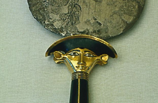 Era piuttosto comune che i manici degli specchi fossero lavorati in forma di divinità, piante di papiro o figure femminili. Alla loro realizzazione gli artisti dedicavano cure particolari già durante il Nuovo Regno, tanto che i manici di questo periodo mostrano grande raffinatezza. Abituali diverranno i manici a forma di ragazza nuda. Soltanto i ricchi potevano permettersi il lusso di avere specchi, peraltro oggetti notevolmente apprezzati. Gi specchi appaiono raffigurati di frequente nei dipinti murali delle tombe degli alti dignitari. Un testo risalente alla fine dell'Antico Regno, che descrive la presa di potere da parte della nobiltà, parla così del lusso dei nuovi ricchi: "La donna che guardava il suo volto nell'acqua ora ha uno specchio di bronzo".