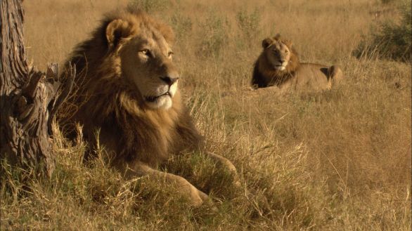 Leone, re della savana I paesaggi suggestivi della savana sullo sfondo, il leone che domina la scena