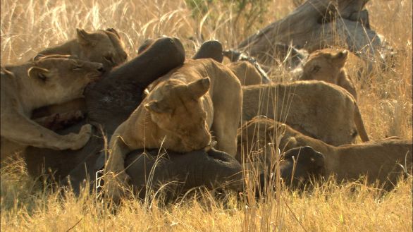Il momento del pasto La caccia è andata a buon fine e le leonesse possono finalmente banchettare con la preda catturata