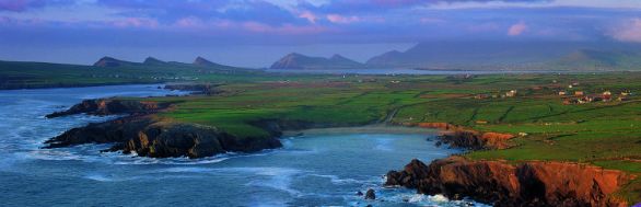 Penisola di Dingle, Irlanda La penisola di Dingle si protende nell’Atlantico: un paradiso romantico fatto di scogliere e spiagge infinite, villaggi di pietra, campi verdissimi racchiusi da piccoli muretti a secco, giù fino al mare; alle spalle, colline fiorite d’erica, giardini colorati da cespugli di fucsia, quasi duemila resti di insediamenti preistorici. Dingle è l’Irlanda dell’immaginario, un angolo rude e selvaggio, roccaforte del gaelico e della storia più antica.