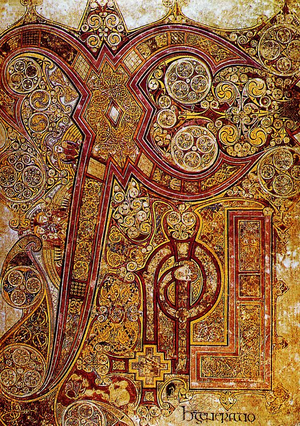 Book of Kells, Biblioteca del Trinity College Splendide miniature adornano il Book of Kells,il manoscritto dei Vangeli conservato nella biblioteca del Trinity College. In alto a sinistra, si ammira la Vergine con il Bambino; in alto a destra un ricco capolettera miniato del Vangelo di San Matteo.