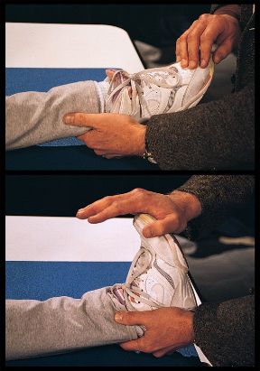 Esercizio per la caviglia. Movimenti per gli arti inferiori da eseguire a terra. Estensione e flessione della caviglia.