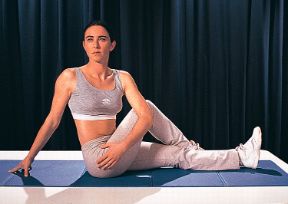 Esercizio per gli arti superiori. Movimenti per gli arti superiori da eseguire a terra. Distensione del busto con ginocchia a terra e gambe flesse.