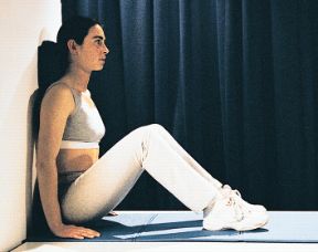 Esercizio per gli arti inferiori. Movimenti per gli arti inferiori da eseguire a terra. Sollevamento del bacino da terra con talloni appoggiati alla parete.