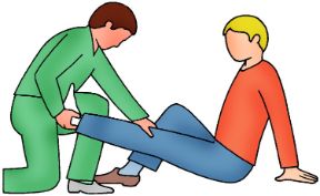 Intervento in caso di crampo alla coscia. Crampo acuto. In caso di crampo alla coscia fate sedere a terra la persona, mentre con una mano sollevate la gamba.