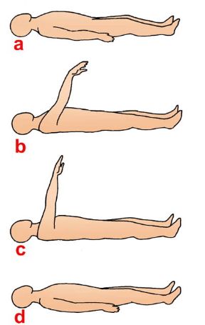Distendersi sul dorso e ascoltare il proprio respiro senza modificarne il ritmo, cercando di seguire mentalmente il percorso dell'aria inspirata ed espirata.
