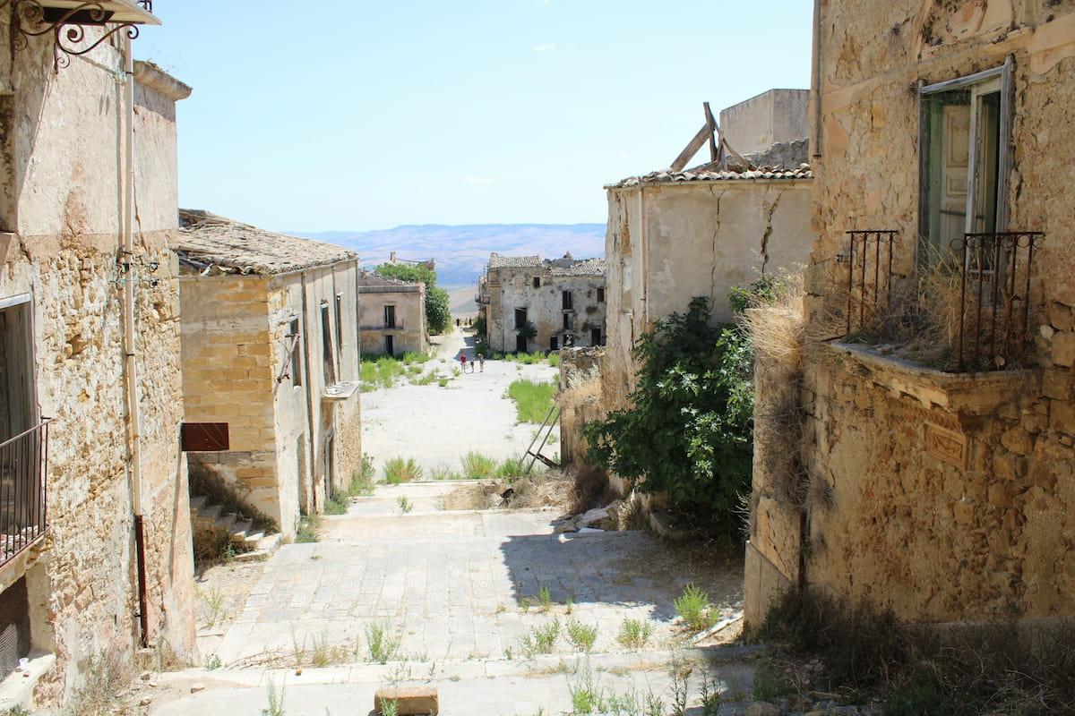 Anche la Sicilia offre numerosi esempi di borghi abbandonati: il più grande dell’isola è Poggioreale, in provincia di Trapani, distrutto dal terremoto del Belice nel 1968 e mai più ricostruito. Il suo centro storico, rimasto congelato nel tempo, offre un raro scorcio sulla storia della Valle del Belice e della Sicilia. Benchè distrutto per l’80%, è stato scelto per l’ambientazione di alcune scene di famosi film, come per esempio “La piovra”, “Malena” e “L’uomo delle stelle”.