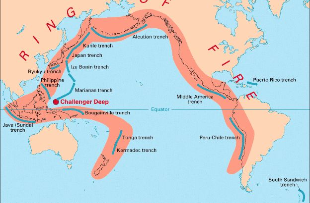 Il motivo di tanto sconquasso è legato al fatto che l’oceano Pacifico si sta progressivamente restringendo a causa del movimento delle placche continentali: la placca oceanica sprofonda sotto le placche dei continenti America e Asia e quantità esagerate di magma risalgono in superficie. Dunque la cintura di fuoco