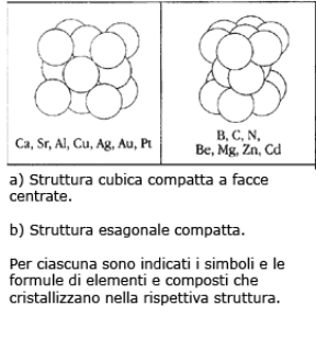 Le tre strutture compatte sono quella cubica a corpo centrato, quella cubica a facce centrate e quella esagonale (v. fig. 10.4).
