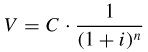 dove V è il valore attuale, C il valore futuro disponibile alla fine dell'anno n, i il tasso di interesse annuale, n il numero di anni. L'espressione 1/ (1+i)n è detta fattore di sconto. I suoi valori precalcolati sono disponibili in tavole finanziarie oppure sono forniti da programmi di software per ufficio. Il confronto dei valori attuali fornisce un utile criterio per paragonare tra loro varie alternative di investimento finanziario.