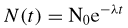 - il numero dei nuclei dell'elemento originario diminuisce progressivamente, poiché essi si trasformano in nuclei diversi, secondo una legge esponenziale. Il numero di nuclei presenti al tempo t, N(t), è dato dalla relazione: