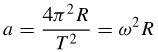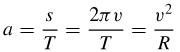 Applicando ora l'usuale relazione tra spazio e tempo in un moto circolare uniforme, si ottiene la velocità del vettore velocità di P, cioè il valore della sua accelerazione, a: