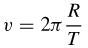 Noto il periodo T di un moto circolare uniforme, la sua velocità è facilmente deducibile ricordando che, per definizione, il punto P compie, in un intervallo di tempo pari a un periodo, esattamente un giro di circonferenza, coprendo cioè uno spazio pari a 2R. La relazione tra spazio percorso e tempo impiegato porta quindi a un valore costante dato da: