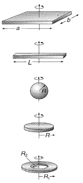 dove m è la massa del corpo e R rappresenta la distanza dall'asse di rotazione. Il momento di inerzia è una quantità scalare, calcolabile geometricamente nel caso di corpi omogenei (v. fig. 9.6).