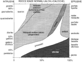 Figura 8.1 Composizione mineralogica delle rocce ignee più comuni.